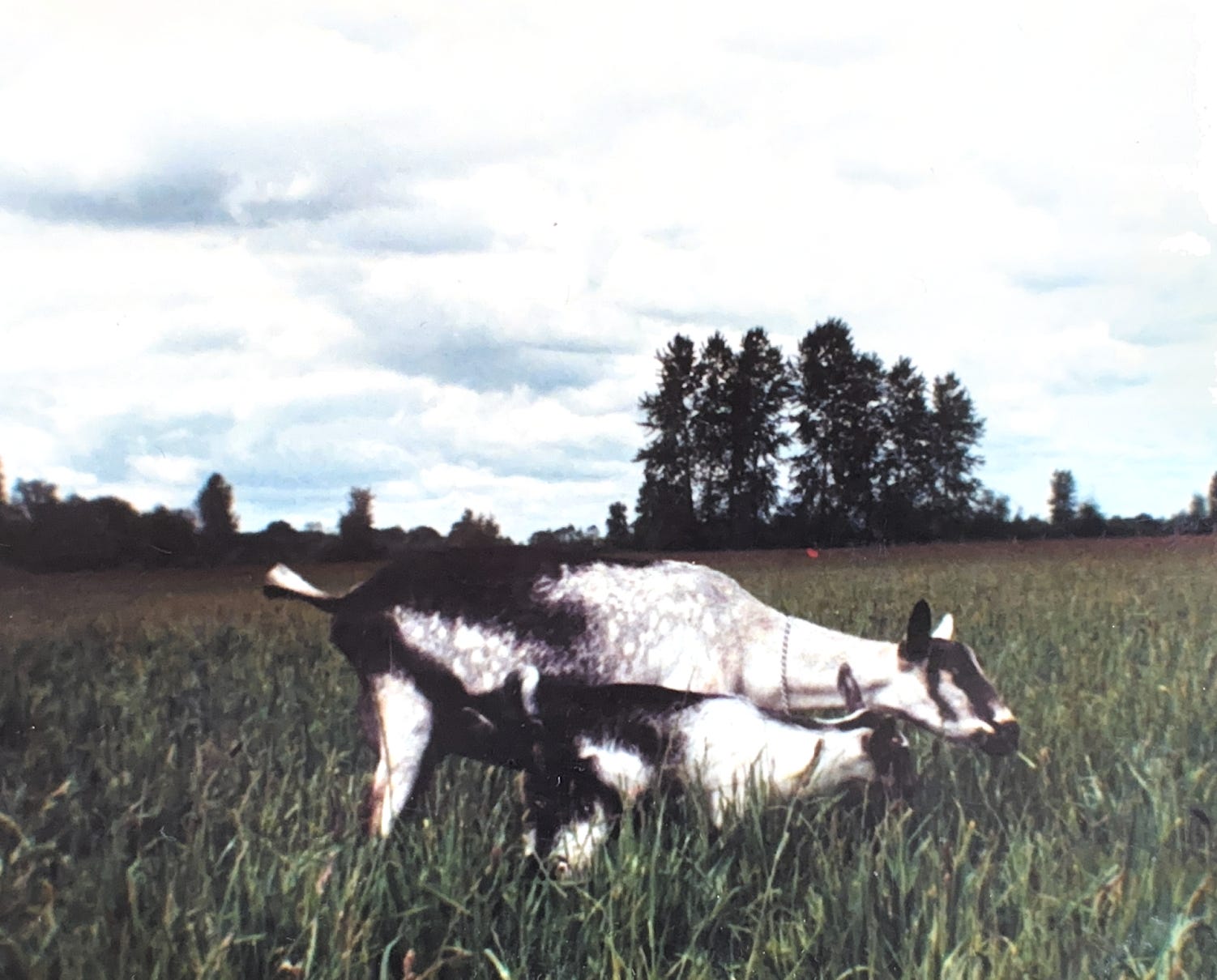 Here’s Maxine (and her kid, Melody) out in the pasture, back in the day.